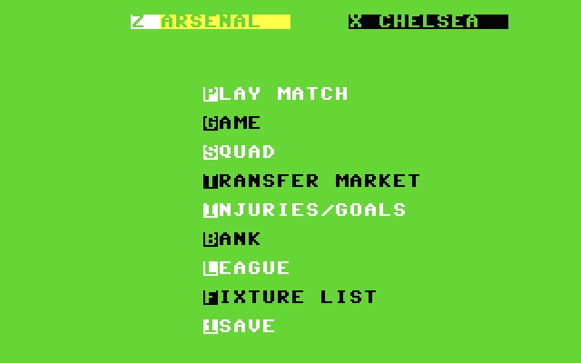 A scaled-down, two player variant of Cult's British Super League titled Two Player Super League. This soccer management game is mostly text based. This game is intended exclusively for avid football management fans. It is based on text and statistics that show the team's finances, skills and position in the league. The matches played are displayed as a text table informing about the events taking place on the pitch.
