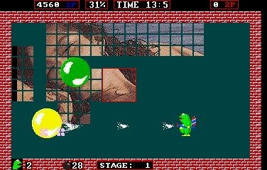 The Return of Lady Frog is an adult puzzle game where the player uses bombs to clear the background and completely reveal the nude photographic image underneath. Each bomb clears away a nine square grid from the background. Bombs can also be used to clear grey square barriers. But bombs do no damage to the balloons. if a balloon rolls over the bomb as it explodes then it snuffs out the explosion and reveals nothing. In order to clear the balloons the player can shoot bottle-rockets at them. The balloons explode to drop items for points or break apart into smaller balloons. Balloons labelled with a scull and crossbones cannot be killed and must be avoided. If a player is hit by the balloons then the player is killed. The game is over when the player loses all of his lives.