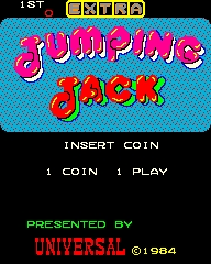 Jumping Jack is a 1984 arcade video game developed by Universal and released by Universal USA in the USA on January 25, 1984. Jump from one place to another. Avoid hitting obstacles. Gather bonus items for points.
