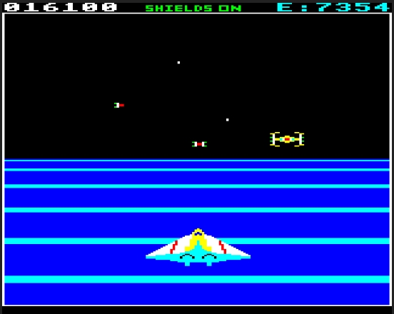 3D SPACE RANGER SUPERB 3D GRAPHICS MACHINE CODE GAME The Cyborg Empire has begun its invasion of the Federation Sector. Surrounded by asteroid belts, and defended by squadrons of android craft, the Death Stars advance toward the Planet Earth. They have but one vulnerable weakness their thermal exhaust ports, leading to the main reactors. Your mission is to penetrate the android defences, fly along the encircling planetary trench, and release photon charges into the reactor exhaust ports. Throughout the mission you must monitor your energy levels and conserve sufficient to escape after your attack. Game Features Full control of your on-screen ship. Keyboard or Joystick option, with user definable keys. Controllable energy shields. Three "smart bombs" available which destroy all visible aliens instantly. Game Score - Shield Status - Energy Level Displays and Hi-Score Table. Freeze Action facility. Comprehensive instructions with program.