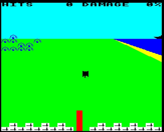 Daredevil Dennis is a platform game where the player takes the role of Daredevil Dennis, a stuntman. Dennis must use a variety of vehicles (motorbike, jet-ski and ski-doo) to perform a number of stunts. The only controls are accelerate, brake and jump. The screen is split into four platforms. When the character leaves the end of one, he appears at the start of the next.