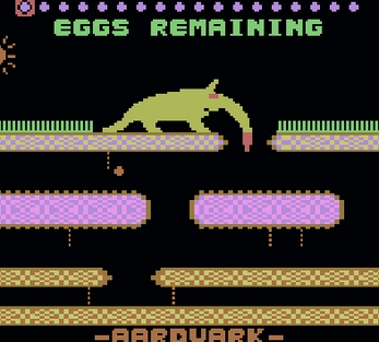 Control the Aardvark’s tongue and clean the ant eggs up. Beware super ants and caterpillars which can reduce the egg counter. As the sun goes down, the game is over. The further you get in the game, the faster the day goes, but your mission is not impossible. The game has 14 levels and 5 maze combinations.