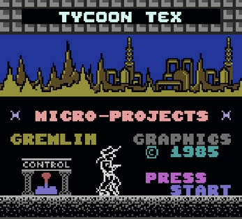 Tycoon Tex is a 'rootin', 'tootin' oil tycoon in the true wild west tradition. Guns blazing, eyes gazing, the faster he can make his pipeline patrol the quicker he can add to his bank balance. Sand, ice or snow can't halt Tex 's speedy draw as he fights off the dangers of falling bombs, surface oil tanks. And if he's a second too slow - **!!?? BOOM - one more leak, one barrel less to add to his sticky hoard.
