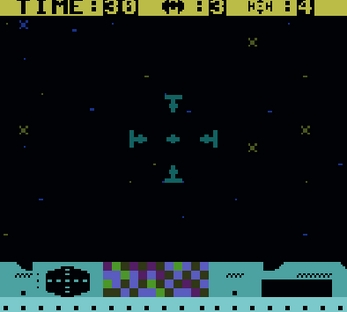 Traveling through the galaxy you are attacked by a squadron of stellar fighters. You have to shoot them down with your twin lasers and became the ace spaceman of the fleet. Do not let the fighters enter your space field or your controls will be disabled for a few valuable seconds of the fight. Beware of overheating your lasers.