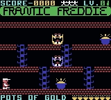 Freddie is a telephone line engineer who has to climb up and down the telegraph poles, picking up pots of gold and avoiding the dreaded Greeblies. The Greeblies take on a different form with every new screen, but one thing's for sure - they may look cute, but they show no mercy! Frantic Freddie also features wacky messages, funny interludes and silly bonuses. Frantic Freddie - a game with a sense of humor!