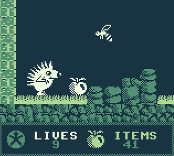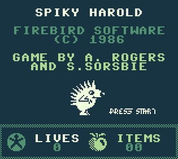 You must help Spiky Harold to prepare for hibernation. Each of the chambers beneath the Hedgerow contains an item of food which Harold can eat. However, he must avoidthe creatures who will try to stop him. On his travels, Harold may find some coins which will give him extra lives, and wine glasses that will make him drunk (the creatures will be faster). When you have helped Harold to collect ALL the objects, he must be guided to his home cavern where he can hibernate.