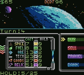 Deep Space Freight is a homebrew game color game inspired by classic economy trading games from yesteryear. Remember Dopewars from 1997? You start with a small loan and a space-worthy freight truck, you must buy low, travel, and sell high, and avoid perils -- and welcome gifts along the way. Every time you travel, a new turn starts with new pricing at a new location. Randomized events can see you robbed, gifted cargo space, or experiencing a cargo fire, and more. How much can you make before your time's up?