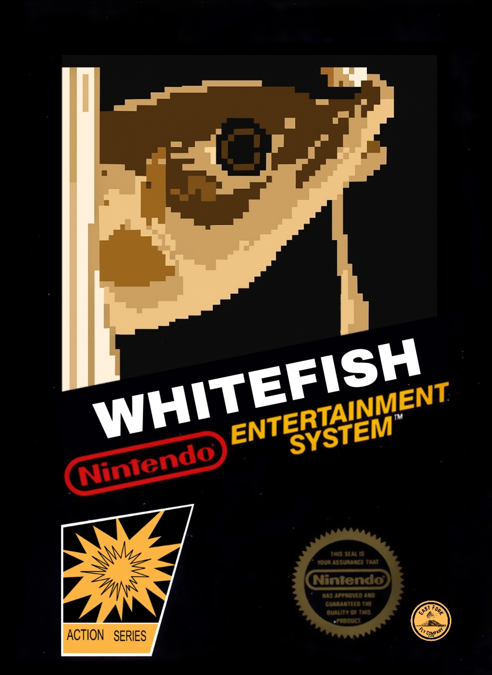 Whitefish (Homebrew NES Game) Step into your waders and cast your line in Whitefish, a top-down retro fishing adventure for the NES. Explore winding rivers and hidden fishing holes as you hook whitefish, battle aggressive trout, and face off against the legendary steelhead in a climactic boss fight to clear the waters. Time your casts, manage your tackle, and stay sharp — the fish fight back! With its simple controls, nostalgic 8-bit visuals, and escalating challenge, Whitefish delivers classic action with a fresh bite.