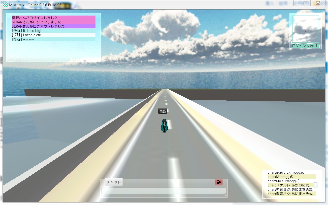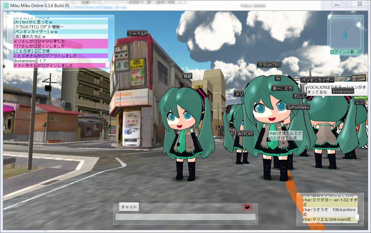 MikuMikuOnline is a PC-based virtual chat software that allows users to interact in 3D using MikuMikuDance (MMD) models.