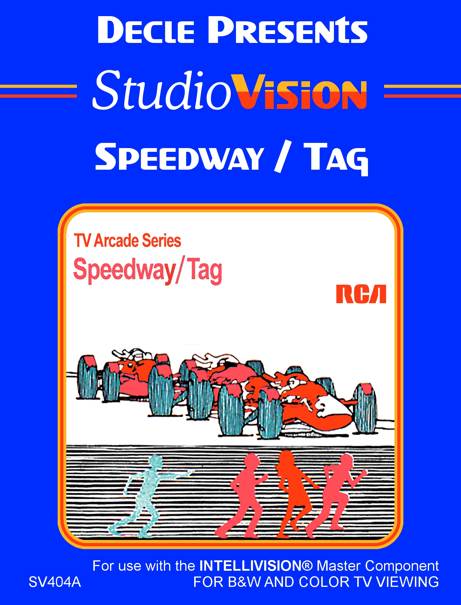 StudioVision is an emulator made to run RCA Studio II roms on the Intellivision game console to mark the 40th anniversary of the RCA Studio II console release. Several games were rereleased packaged with StudioVision. Speedway is a two-player, top-down racing game. Players control simple, block-like cars on a track. Acceleration is automatic, and players focus on steering with the console's built-in keypads. The goal is to be the first to complete nine laps. Collisions with walls or the other car will temporarily stop the player's car. Tag is a simple two-player game of chase. The game takes place on an empty screen and lasts for two minutes. Each player controls a simple square shape. One square has a dot, marking it as the "prey," while the other is the "hunter". The hunter scores points by tagging the prey. After a tag or ten seconds, the roles swap, and the hunter becomes the prey. The player with the most points at the end of the two minutes wins.