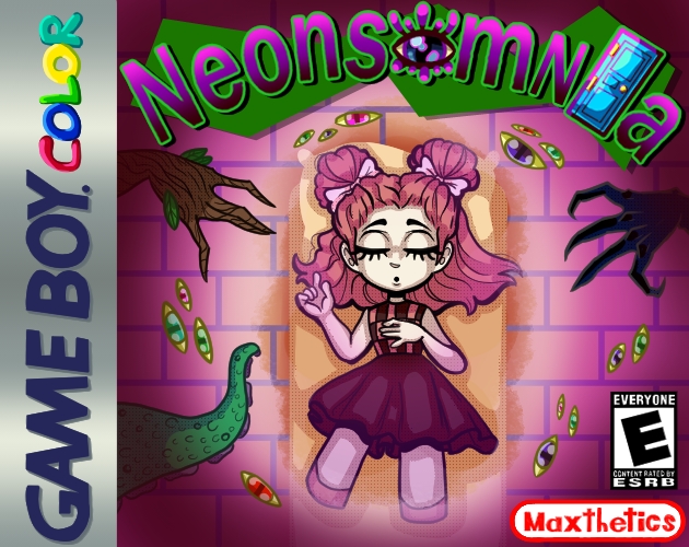 Neonsomnia is a Gameboy Color game about exploring a strange and surreal dream world. It was developed for the Dream Diary Jam 7 and is a fangame based on Yume Nikki. Featuring: 4 nexus doors each leading to unique multi-leveled dream worlds with tons of branching paths. 4 effects to collect Lots of small details that change at random each time you re-enter the dream world, allowing you to discover new things and places Very deeply hidden areas and secrets no literally nobody.
