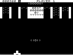 U.F.O. is a single player variation on the Space Invaders genre. The player controls a fighter aircraft, a U.S.A.F. F21 Codor, the only plane that is capable of defending the Earth against an alien onslaught. The player has only four of these planes / lives with which to complete the game. The plane can be moved left and right as well as, to a limited degree, up and down. The F21 Condor has a gun with which the player must shoot alien ships that are attacking Earth. However, this gun will overheat and jam if used too much so on the right of the game screen is a temperature gauge that the player must monitor. When all enemy ships have been cleared from a level the player must fly their ship to the next level through a hypersonic air corridor to the next combat zone. Here, against a flashing background, the player must keep their craft within the bounds of the corridor as it gently winds its way to the horizon. After a successful transit the player can spend credits that have been earned on either their shields or their energy before entering the next phase of combat.