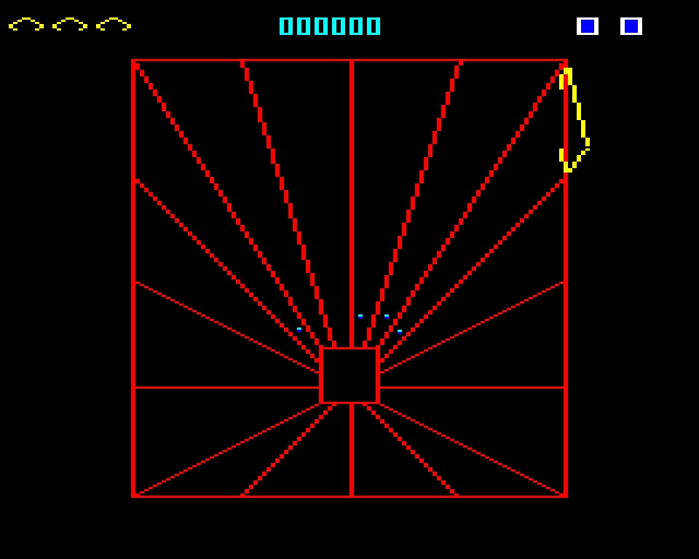 Sentinel is a 1-player Tempest clone for the BBC Micro. In a far quadrant of Space Sector 4 are the compressed single-dimension gateways to the anti-matter world of Migon. The player controls a spaceship that can rotate clockwise or counterclockwise around the 16 spaces on the outside of a square. The ship fires towards the center, and tries to destroy incoming enemy vessels before they reach the peripheries of the level. Some enemy vessels rotate around the peripheries of the level threatening the player. Once per level, the player can fire their Star Smasher, which destroys all enemies on the screen. At the end of each level, the player must avoid meteors that stream towards the edges of the screen. The player starts with three lives.