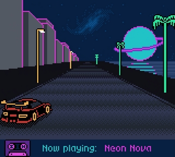Listen to an 8-bit song while driving in neon-lit streets. The driving is basically just for the vibes.