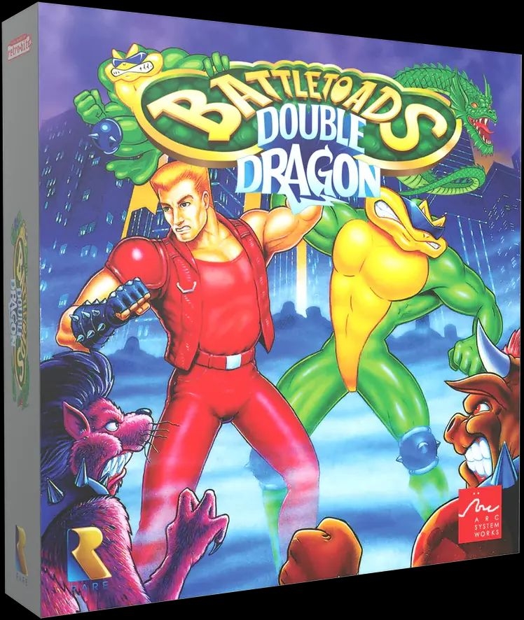 Lead the Double Dragons Billy and Jimmy Lee as they team up with Zitz, Pimple, and Rash against the gruesome twosome. The Ultimate Team of ‘Toads and Dragons leaps onto the portable screen to bring down the Dark Queen and the Shadow Boss. Lead the Double Dragons Billy and Jimmy Lee as they team up with Zitz, Pimple, and Rash against the gruesome twosome. The crossover brings this iconic team together to fi ght Big Blag, Abobo, Robo-Manus, and more in this toadally epic adventure! Battletoads & Double Dragon Collector’s Edition includes: Ultimate Team Green cartridge for Game Boy® Numbered hardcover magnetic cartridge packaging Detailed instruction manual