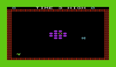 Atom Smasher is a single screen shoot 'em up with multi directional movement that takes place in a nuclear reactor during a meltdown. In the middle of the screen are some neutrons and a single proton which one electron moves around. To delay the meltdown the player has to shoot the proton but avoid the electron since that will speed up the meltdown for a short time. For each proton that is shot, an extra electron is released. As the game goes on molten debris will start building up from the sides of the screen and if it reaches the nucleus the game ends. It is possible to destroy debris by firing at it. In the Amstrad version it is also possible to ram through it. When colliding with an electron one life is lost.