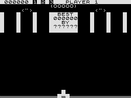 U.F.O. is a fixed screen shoot 'em up that is based on the arcade game Astro Invader. Rampaging hordes of kamikaze aliens are attacking the earth and of course it's up to the player to shoot them down before they crash into the surface. What sets Astro Invaders variants apart from other shoot 'em ups is that the aliens position themselves in columns after entering the screen. As the columns fill up with aliens, they begin to descend until they explode upon hitting the ground. If in range of the explosion, the player will die. In addition to these normal aliens, there are neutron bombers whose explosion range covers the full screen and therefore has to be shot down. The player has three lives.