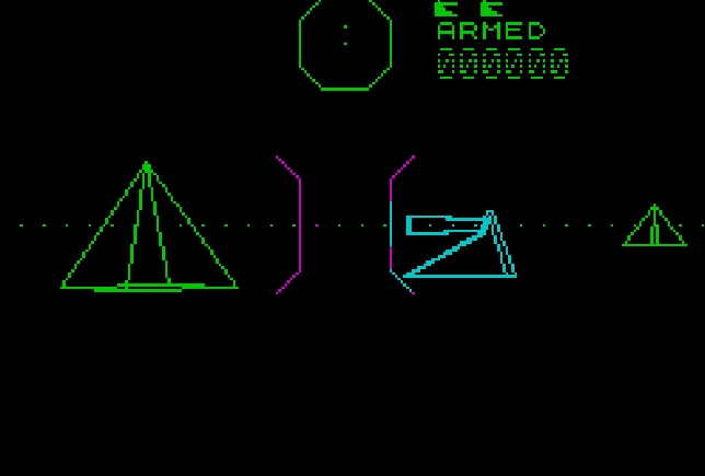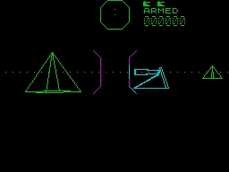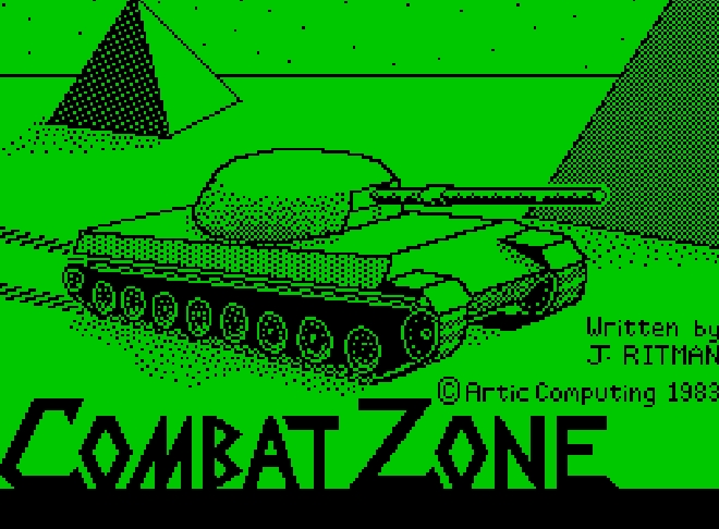 3D Combat Zone is a 1st-person tank hunting game which takes place on a vast plain scattered with pyramids. It transports the player into the valleys of Lacentra, now a battlefield occupied with the spoils of a centenary war battled between two opposite factions. The player is in charge of commanding a special tank and the only left from a vanquished fleet. The solitary vehicle is equipped with a radar system and provided with a mighty cannon loaded with heavy piercing shells. The cannon is reloaded every time one of the shells hits something or goes through the maximum possible distance. It faces the remnant of the enemy fleet which still commands three types of vehicles: normal tanks, hovering saucers and super tanks. This game belongs to the pioneering group of games designed for Spectrum which started to use the 3D wire frame technology effectively, maximizing the use of limited resources on an 8 bit machine and structurally inspired by Battlezone.