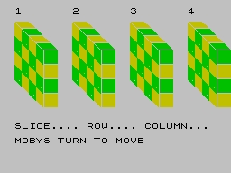 3D-Quadracube is a three dimensional Tic-tac-toe game that can be played by two players or one player against the computer. The game is played on a 4x4x4 cube that has been cut up into four slices that are drawn isometrically. The aim is to get a line of four and it can be vertical, diagonal or horizontal through the cube or on any of the slices. The game is played with the keyboard and for each move the player enters the number of the slice, the row and the column. After a completed game the winner can get a high score based on the number of moves needed.