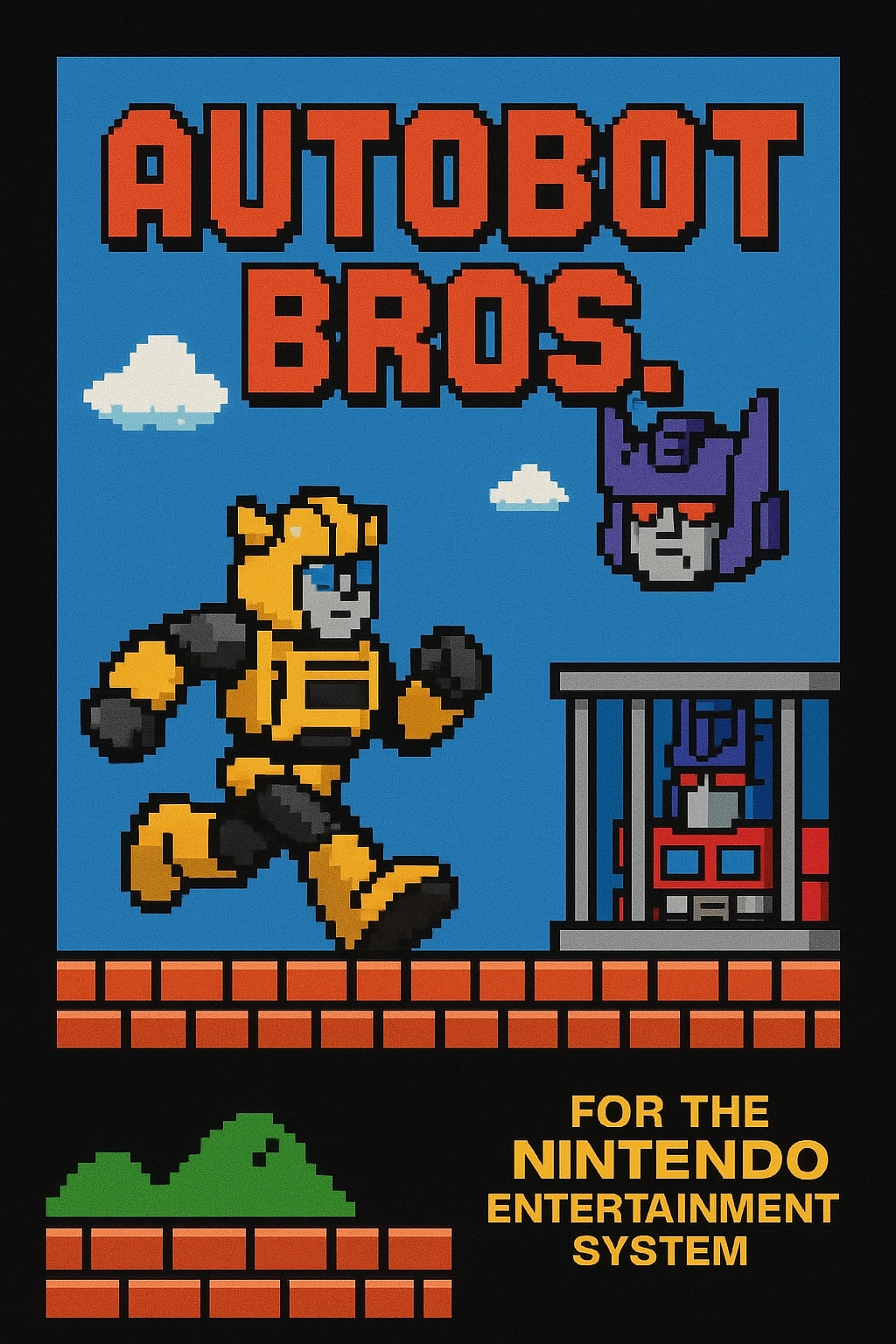 Somehow, the evil Decepticons have kidnapped Optimus Prime. It’s up to Bumblebee to single handedly take them on and rescue the leader of the Autobots. This is a Transformers themed Graphics and Text hack of Super Mario Bros. nearly every single aspect of the graphics has been modified to fit the source material in some way. You play as Bumblebee, whom is green for some reason.