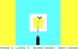 3D Tunnel is a first-person shooter where you must move down a constantly moving tunnel, which moves in multiple directions, over various phases to escape. As you move through the tunnel you must shoot a certain amount of various creatures including bats, frogs and rats, that come towards you, to move to the next phase. If you hit the walls then you lose one of the ten initial lives, and when they are gone then it is game over. The last phase has no shooting, you just have to avoid various underground trains that hurtle towards you. You are able to practise any phase and there are three speeds to select from (Slow, Medium and Fast).