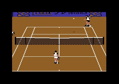 This tennis simulation followed up Simulmundo's 3D World Boxing, while 3D World Soccer was the final game in the series. There is some sports management involved as the player you choose (from pre-built selection or from your own creation) can improve his skills (forehand, backhand, serve, volley, etc.) as he wins matches and prize money and moves up in the rankings. There's 4 different play options: Singles Match, Singles Tournament, Grand Slam, and ATP Tour. You must be qualified to play for the last two options based on your current ranking. Beating opponents ranked higher will move your own ranking higher more quickly. The playing view is directly from behind the player but as you approach the net it is scaled to always be appropriate for what the player would see from that vantage point. The players are viewed in large well-animated forms and even the backgrounds of crowd scenes are also animated. At the bottom of the screen there are player's photos and ability bar graphs as well as a small overhead view of the player's positions on the court.