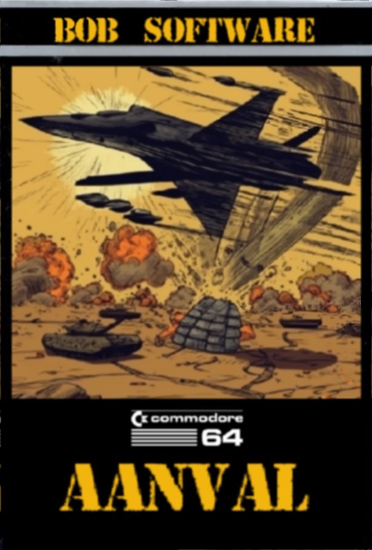 Aanval (Dutch for Attack) is a Dutch language shooter in which you fly a plane and have to drop bombs on tanks and other targets such as army transport vehicles. Be careful, as you only have one life. Developers Bob SierhuisCap 3001Peter W. Thierolf Publishers Bob-Software