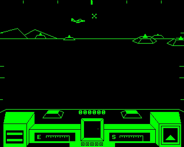 A high-res blaster where you have to contend with planes, helicopters and ground forces all attacking you. Kind of like a stationary clone of Battlezone.