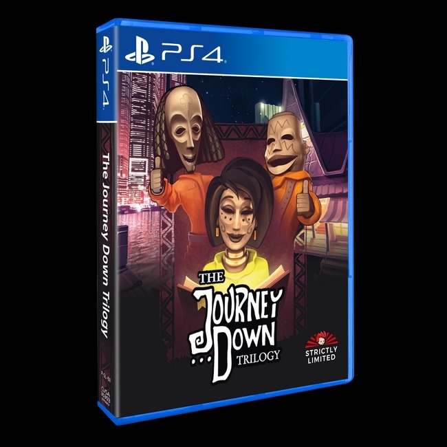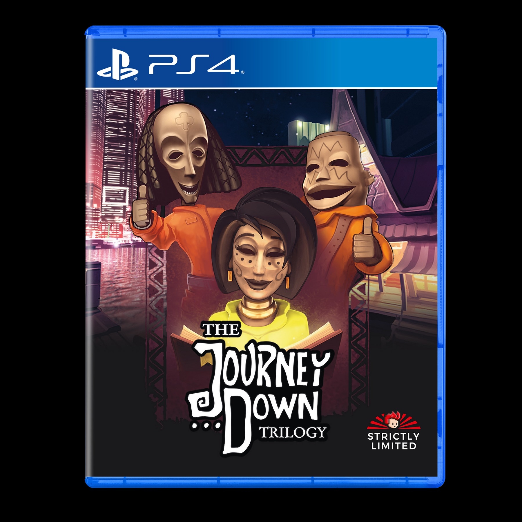The Journey Down Trilogy Limited Edition is an officially licensed PlayStation 4 game. Includes a colorful game manual. Experience a journey inspired by classic adventure games and African-Caribbean culture! The Journey Down Trilogy includes three full point-and-click adventures with a rich African-Caribbean flair. Join Bwana, Kito, and Lina as they search for a lost journal that leads them into the mysterious Underland—a world filled with secrets, danger, and ancient power. Solve clever puzzles, uncover hidden truths, and experience an unforgettable journey across all three games. Gameplay The Journey Down Trilogy is a very intuitive yet difficult point-and-click adventure game package. The games begin with simple puzzles to get a quick impression, but this quickly changes over the course of the first chapter. You can indirectly influence the course of the games by the next steps you decide to take. Thus, the games quickly let you choose which puzzles you want to pursue more intensively and which ones appear unimportant to you. It's not that easy to recognize the puzzles in the first place. Playfully, you'll be guided through the main story, encountering picturesque new environments and exciting characters on the trail of the mysterious Underland's secrets. Which mysteries will you get to the bottom of? Which characters will accompany you on your way? Will the three friends Bwana, Kito and Lina solve the secret of the Underland? And what does all this have to do with the disappearance of Bwanas and Kitos father, Captain Kaonandodo? Find out and be excited for an unforgettable adventure in unique settings accompanied by a soundtrack combining various styles. Features: Point-and-Click gameplay with a great sense of humor inspired by the classics Includes "The Journey Down: Chapter One", "The Journey Down: Chapter Two" and "The Journey Down: Chapter Three" Get to know a divers cast of characters with vastly different personalities, all voiced by outstanding voice talent who breathe life into each one of them Explore a variety of locations from sprawling cities to deserts, market towns, ancient ruins and desolate islands among others Marvel at the unique art style, blending beautiful hand-drawn 2D art with 3D elements A Jazz-heavy soundtrack, with Caribbean and African influences that sets the mood perfectly