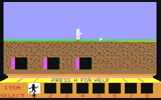 Ali Baba by Suzy Soft on the Commodore 64 is Pac-Man style maze game from Croatia. Created by Mario Mandic & Zoran Haustic, in this game the baddies steal the cash bags and take them to the top of the screen. You must touch\grab them to take the cash bags away from them. Cash bags that get to the top will stay there in later levels until all 10 top sections are full, at that point the game is over. You can also drop the wall to temporarily block the bad guys. You can stop all the baddies except the red one, who is the heavy, and he can withstand you.