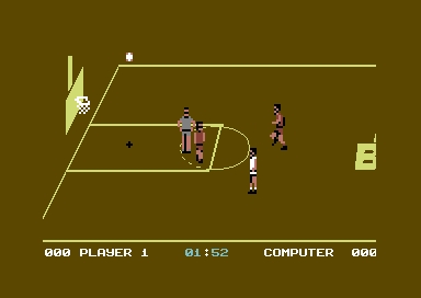 All American Basketball as the name suggests is a computer version of the sport of basketball. Here 1 or 2 players can compete in an eight American team tournament or just play an exhibition game. Before you play a game you have a number of options which include how many players, strip color, skill (amateur or professional), and length of game. Onto the game, it is viewed from the side showing a part of the court. The joystick moves the player flashing and fire button throws the ball.