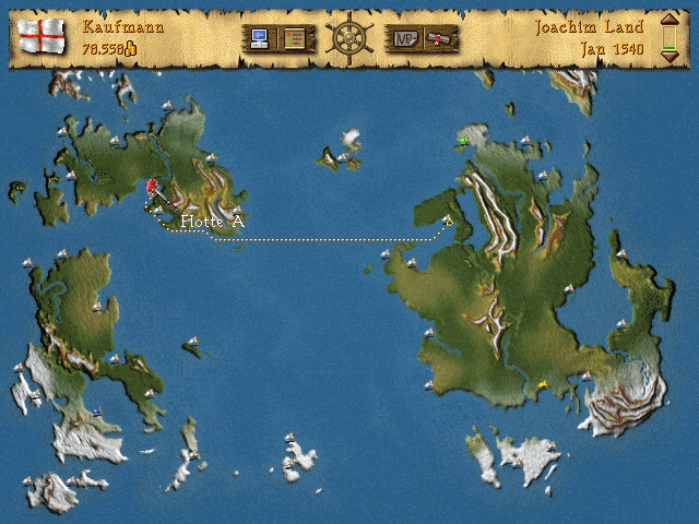 In Herrscher der Meere, you embark on a grand maritime adventure at a time when the seas are both a path to fortune and a theatre of danger. You begin by choosing from one of five different ship types, and then set out as a trader — buying goods, navigating between bustling ports, and managing cargo to build your fortune. As you sail the open seas in real time, the map comes alive: other ships glide across the water, and friendly ports offer the chance to establish factories to produce one of sixteen different goods. But trade is only one way to dominate the waters. You may also turn to piracy — plundering enemy ships, engaging in real‑time sea battles, and claiming captured vessels for yourself if they survive the fight. The choices are yours: become a respected merchant magnate, a ruthless pirate lord, or carve out some middle path somewhere in between. Whether you’re hauling cargo to build an empire, crafting goods in your own factories, or chasing down enemy ships to take by force, Herrscher der Meere offers a richly detailed simulation of life at sea — full of risk, reward, and the constant allure of freedom on the waves.