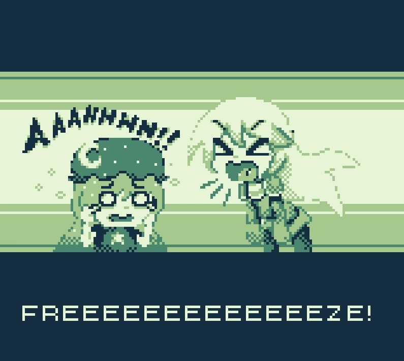 The bootleg 2hu Yuuto Ichika is back to make some new friends! This Game Boy homebrew is available to be played on emulators, such as Visual Boy Advance, and real hardware. Explore a town full of thugs and befriend all sorts of criminals and crazy people. Discover what happens after the events of Super Ledgehop: Double Laser before its proper follow-up game get released. This one week project was developed with GB Studio.
