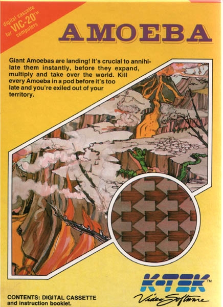 Amoeba is a single screen game where giant amoebas have landed and are trying to take over the world. The amoebas appear on the screen in pods, each containing six of them. The player's task is to remove them by moving a laser probe over them which automatically kills them. It's necessary to be very quick about it though because with time they will start to multiply. After that has happened the amoebas can not be removed since any contact with them will lead to instant destruction of the probe and the game will be over. Amoebas that multiply stay on the screen throughout the game making it harder for the player to move around.