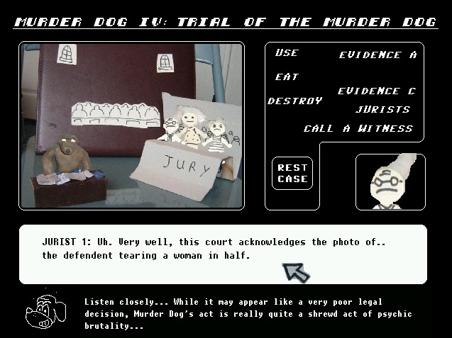 Murder Dog is on trial in the Hague for crimes against humanity! Can you help him beat the rap and continue his reign of blood? Multiple endings.