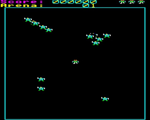 Fight for your life (and highscore) against endless waves of killer robots cornering you in the futuristic Galactic Arena of the year 3000. When you clear the level, the next wave gets faster and tougher, luckily you get 3 lives and an extra one every 20 000 points. This top-down shooter offers optional dual joystick control (movement/shooting).