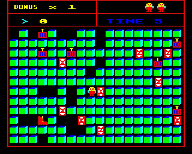 Move along the blocks, avoiding the TNT while picking up the detonators. Make sure not to block your way to a detonator as the blocks disintegrate after you have stepped on them. Avoid the BOOT at all costs.