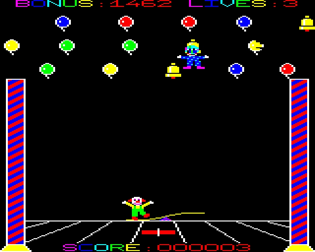 Bozo and Beebo is an arcade game heavily inspired by the arcade game Clowns/Circus. The goal is to pop all balloons with Bobo or Beebo. If one of them is in the air the player can move them left or right. If one of them misses the rocker he will die.
