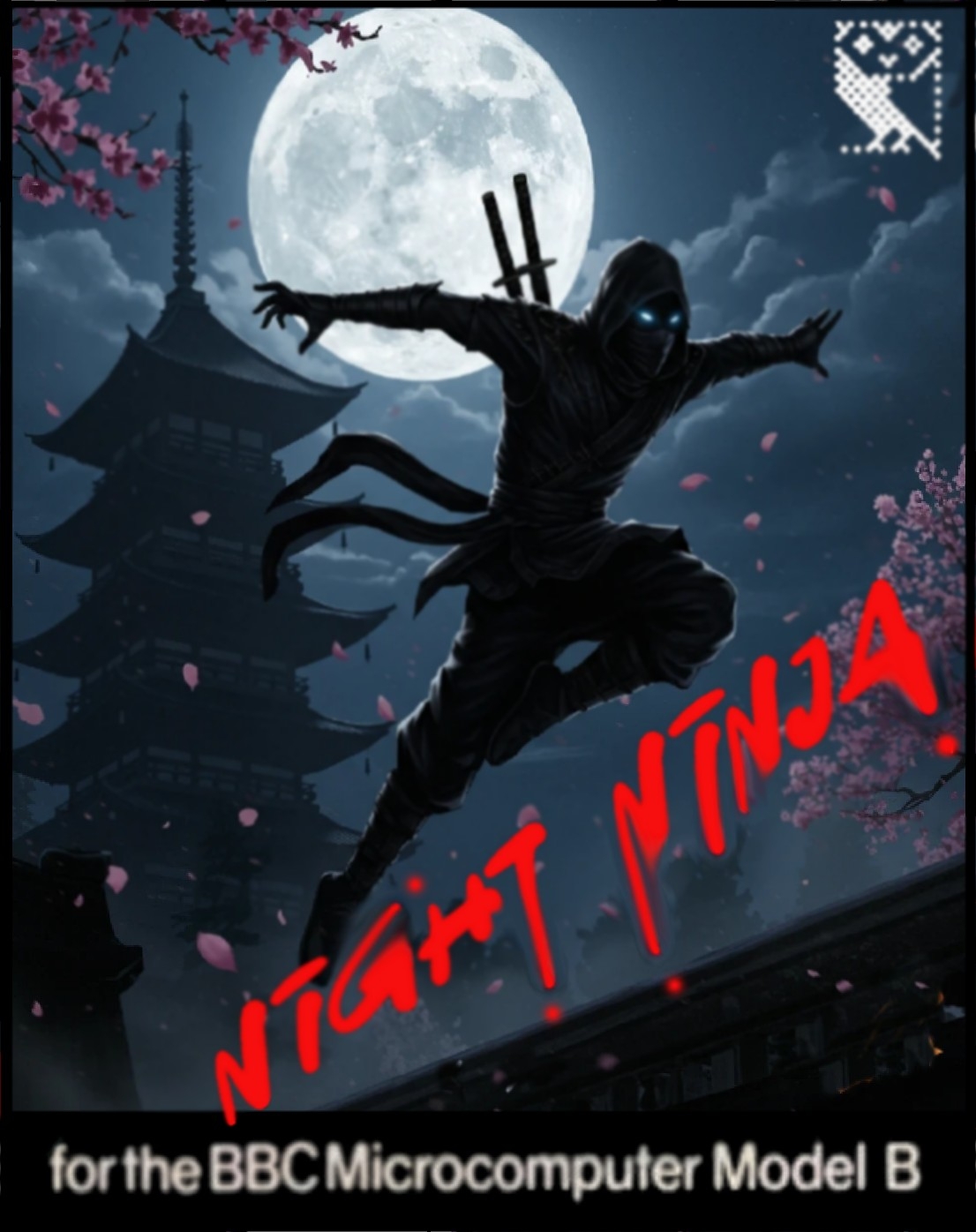 Introducing Night Ninja - a fast paced arcade style game for the BBC Micro Model B, B+ and BBC Master series computers. Embrace your inner Ninja and collect fifteen lanterns on each screen then exit through the door. Inspired by Samurai Lantern by adventurebit Featuring large colourful mode 2 graphics and 50fps per pixel sprite movement this game will challenge your reflexes. Can you beat all four levels and set a best time? nnscreens.png Default controls are Z/X for left/right, Return to jump and Shift to swing sword. Controls can be redefined at the start of the game. Change the sound volume with f0 and use f1 to select a difficulty level from the main screen. Pressing Escape will move to the next screen to allow practice runs but will prevent a best time or high score from being recorded. Hints for play: Tap the jump key for a small jump or hold for a larger jump. You can change direction and swing your sword whilst in the air. Controlling the number of monsters on the screen is key to success. It is possible to exit some screens at the edge and come back on the other side. This is risky in case a monster spawns but can be useful to get out of trouble. The game will only record a best time when all four screens have been beaten. Best times and high scores are per difficulty level. Th game takes over the whole machine. Exit with CTRL-BREAK & on some machines you may need to reset them completely.
