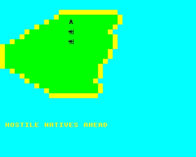 Find the hidden treasure before the pirate ship reaches the island. This game has all the ingredients of high adventure. A desert island, peopled by natives both hostile and friendly, gold buried at the spot marked ‘X’ on the map, quicksands that spell danger to the unlucky treasure-seeker and even Long John Silver’s parrot. While you hunt for the booty the pirate ship is heading towards the island and once the pirates land you are certain to be captured. The game is displayed in colour graphics and has sound effects as well.