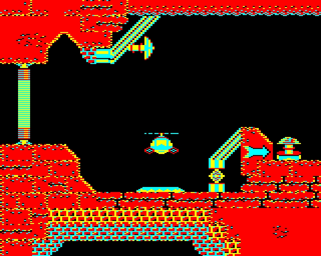 Airwolf is a video game based on the TV series of the same name, it was released for a range of home computers including the BBC Microcomputer. As Stringfellow Hawke, a former Vietnam chopper pilot, and the only man in the free world trained to fly the billion-dollar helicopter AIRWOLF you have been assigned a dangerous rescue mission by the FIRM. Your task is to rescue 5 scientists from an underground lair by destroying its layer of protection and then getting to the core. Moving onto a screen at a time you must shoot out anything and everything in your path, including lots of regenerating static targets. Realistic gravity takes effect, so you can't simply hover in a set position. Elite Systems also re-released the game on their budget Encore label.