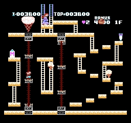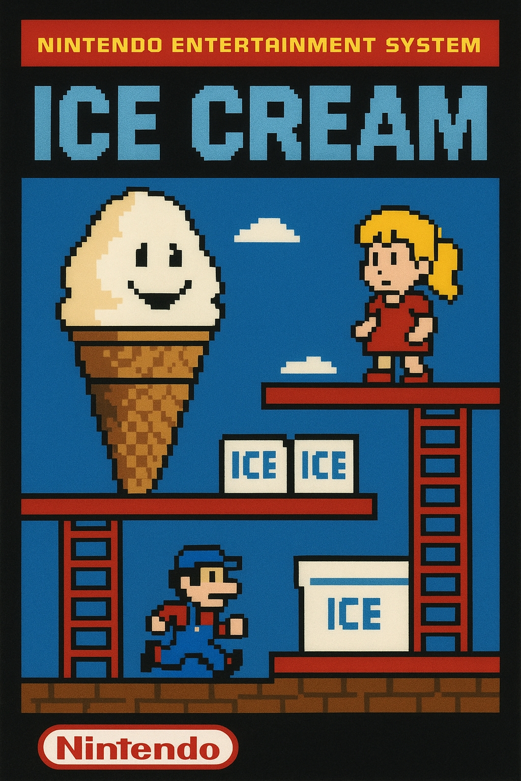 Is this a dream? No, it is not, sadly. Go forth unto the evil Ice Cream Factory and save your friend Irene. Stopping the evil Giant Ice Cream Cone from terrorizing the world is your number one duty. The factory spans three levels, each with their own tricks and traps. Others have come before you, but have failed. Irene is waiting for you to save her. Someone must answer the call; Terror can not reign over the land. Graphics and text hack of Donkey Kong featuring the greatest confectionery mankind has discovered yet.
