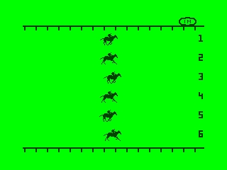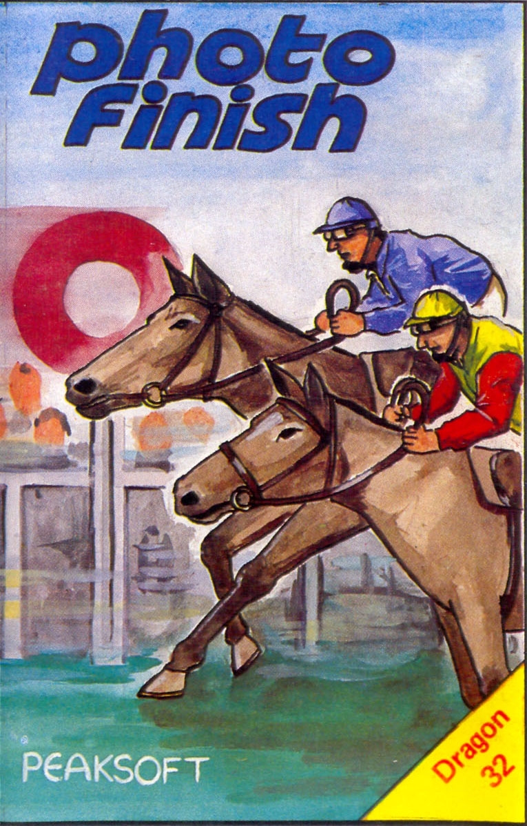 Photo Finish is a 1–4 player horse race gambling game for the Dragon 32/64. Each player starts with $100, and can bet on the winner or ends of six horse races. The player then watches the horses race and sees a photo finish at the end. The race results and payout are shown after each race. Players are eliminated when they run out of money.