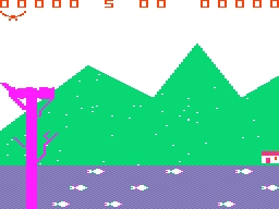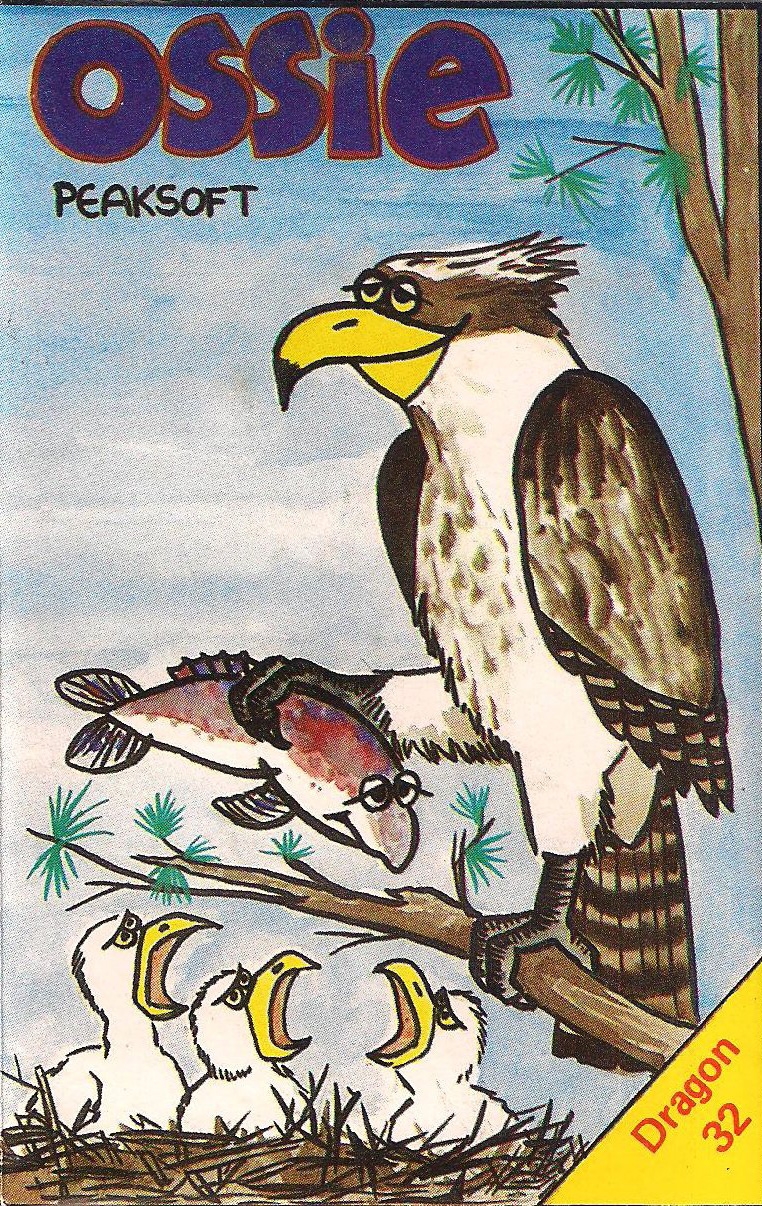 Ossie is a single screen action game where the player is in control of an osprey. The osprey has five chicks located in a nest at the top of a tree located on the left side of the screen and the player's task is to feed them with fish to prevent them from starving. At the bottom of the screen is a river where fish swim in lines from left to right. Fish are caught by positioning the osprey at the right height and pressing the fire button to make it dive. The height decides which row of fish can be reached. Once a fish has been caught it has to be flown and dropped into the nest. The time is limited and if the fish is not delivered within twenty seconds a chick will die. Additionally there is a poacher that occasionally climbs the tree in an attempt to steal a chick. When it happens the osprey has to fly into it to make it fall down or a life will be lost.