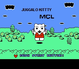 Graphics hack of Hello Kitty no Ohanabatake. Hello Kitty is now a hatchet wielding Juggalo up to no good.
