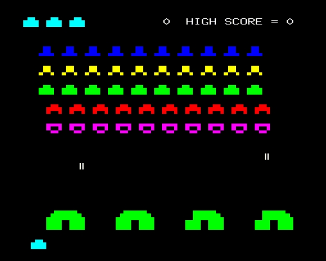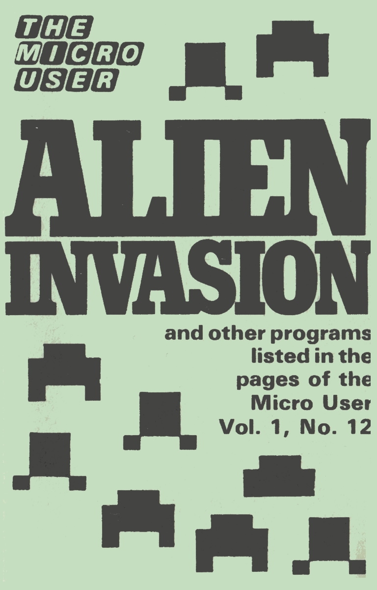 A Space Invaders style fixed-screen space shooter published in Micro User magazine vol.1 issue 12 in February 1984.