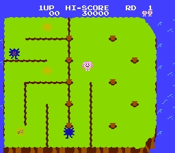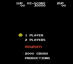 Mr. Messy is being his messy usual messy self. He is puking into cups on the ground, causing the earth to shatter. But then Mr. Happy comes along, and tells Mr. Messy that he is bad. So of course, Mr. Messy throws mud at him, making Mr. Happy not very happy at all. Then Mr. Sneeze shows up, and starts sneezing all over Mr. Messy. Mr. Messy doesn't want to get sick, so he throws mud at him, too. If anyone touches him, or especially if he falls in the water, Mr. Messy will get clean. And we wouldn't want that to happen! Mr. Men is a romhack of Dig Dug 2.