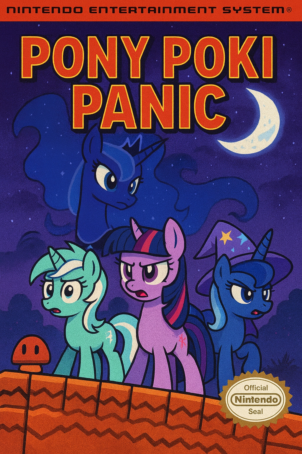 Relive the classic “Super Mario 2″ NES game with the colorful ponies from “My Little Pony: Friendship is Magic”! The dark spirit of Nightmare Moon has invaded the Dream World. She has caused everypony to start having nightmares, preventing nopony from sleeping. It is up to Twilight Sparkle, Lyra Heartstrings, Trixie Lulamoon (a.k.a. The Great and Powerful Trixie) and Princess Luna to defeat the dark spirit so everypony can sleep again.