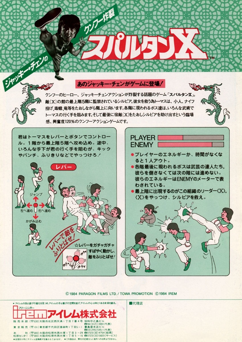 Spartan X is a 1984 arcade video game developed and released by Irem in Japan on November 24, 1984.