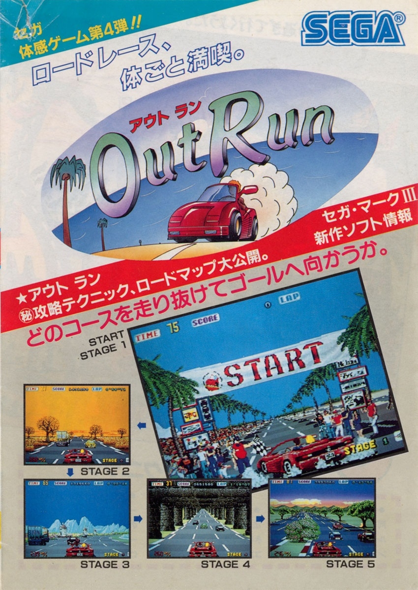 Out Run is a 1986 arcade video game developed by Sega R&D1 and released by Sega in Japan on September 20, 1986.